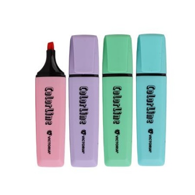 Szövegkiemelő készlet, 1-5 mm, VICTORIA OFFICE, "ColorLine", 4 különböző pasztell színAlapítvány támogatás 1 Ft
